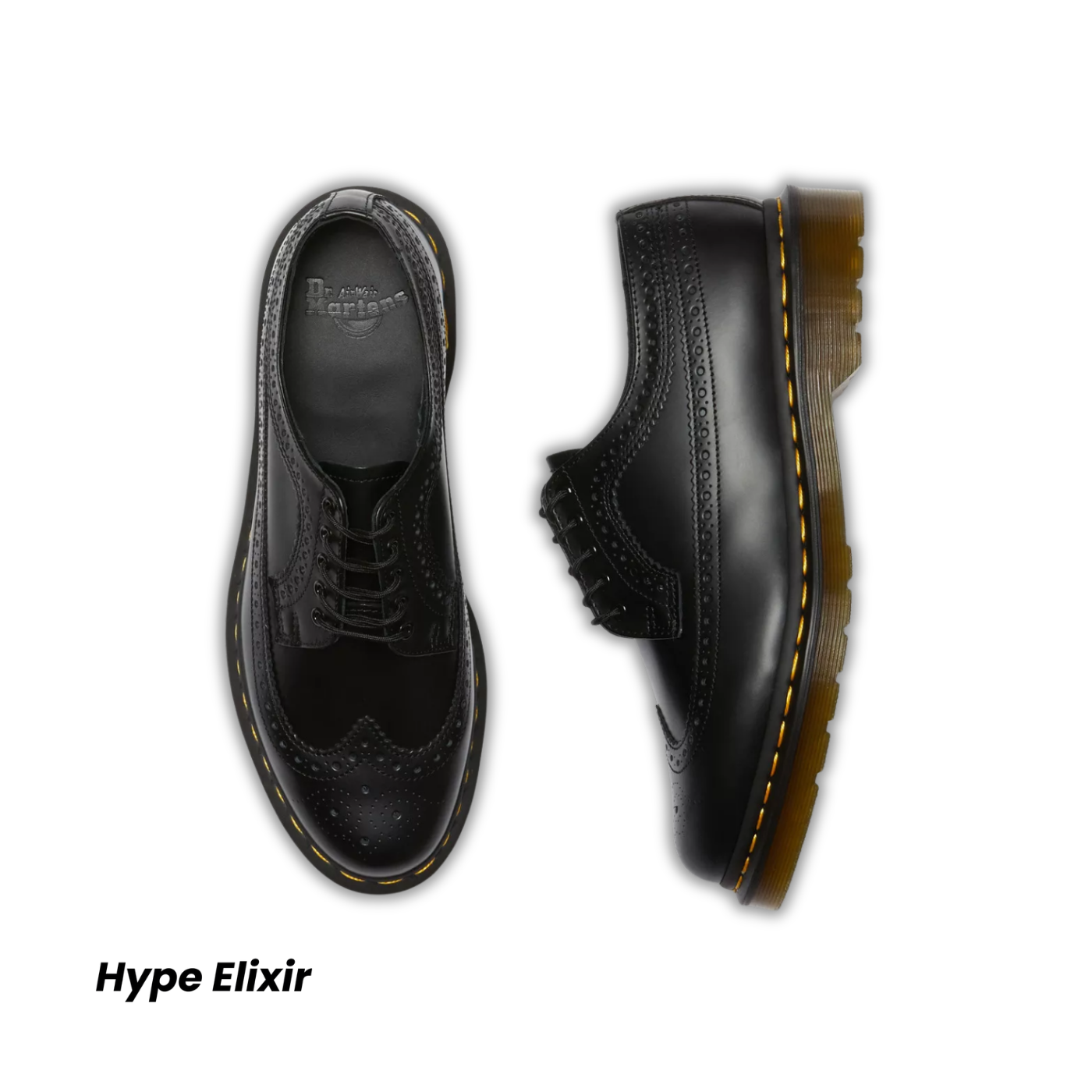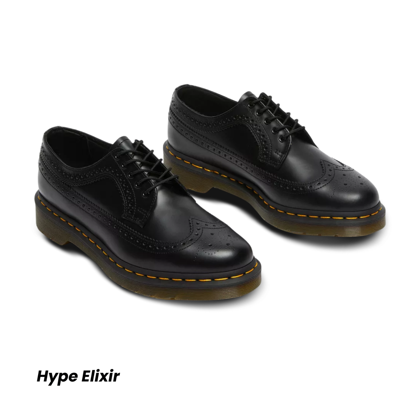 Dr Martens 3989 Yellow Stitch Smooth Leather Brogue Shoes Black